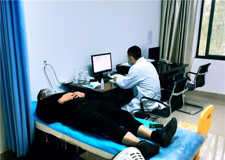 员工在体检中心做心电图检测