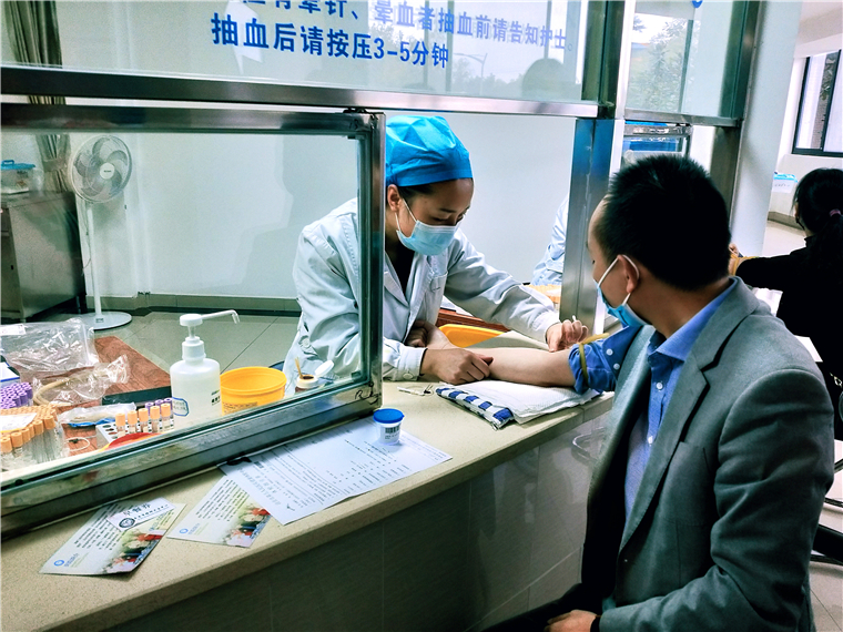 员工在体检中心测血压