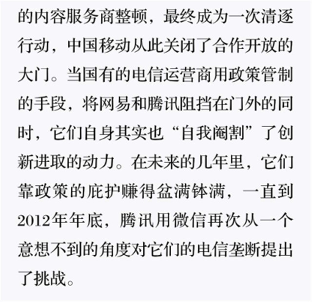 深读之后发明,,,,,,,着实全书真正的焦点在于透过腾讯可以视察到的中国企业逻辑,,,,,,,其中许多基于国情而降生的特殊能力,,,,,,,已往或受诟病或被追捧,,,,,,,而本书作者可以以越发客观的姿态对其举行剖析,,,,,,,这无疑是一种今世创业者和企业家应当学习的姿态和能力。。。。。。