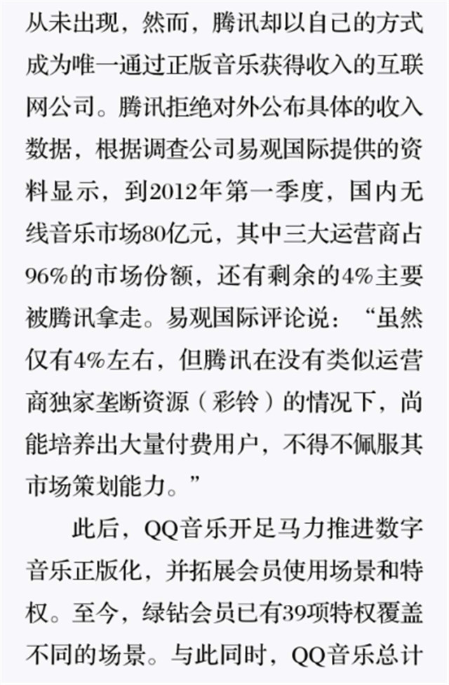 深读之后发明,,,, ,,,着实全书真正的焦点在于透过腾讯可以视察到的中国企业逻辑,,,, ,,,其中许多基于国情而降生的特殊能力,,,, ,,,已往或受诟病或被追捧,,,, ,,,而本书作者可以以越发客观的姿态对其举行剖析,,,, ,,,这无疑是一种今世创业者和企业家应当学习的姿态和能力。。。。。。。。