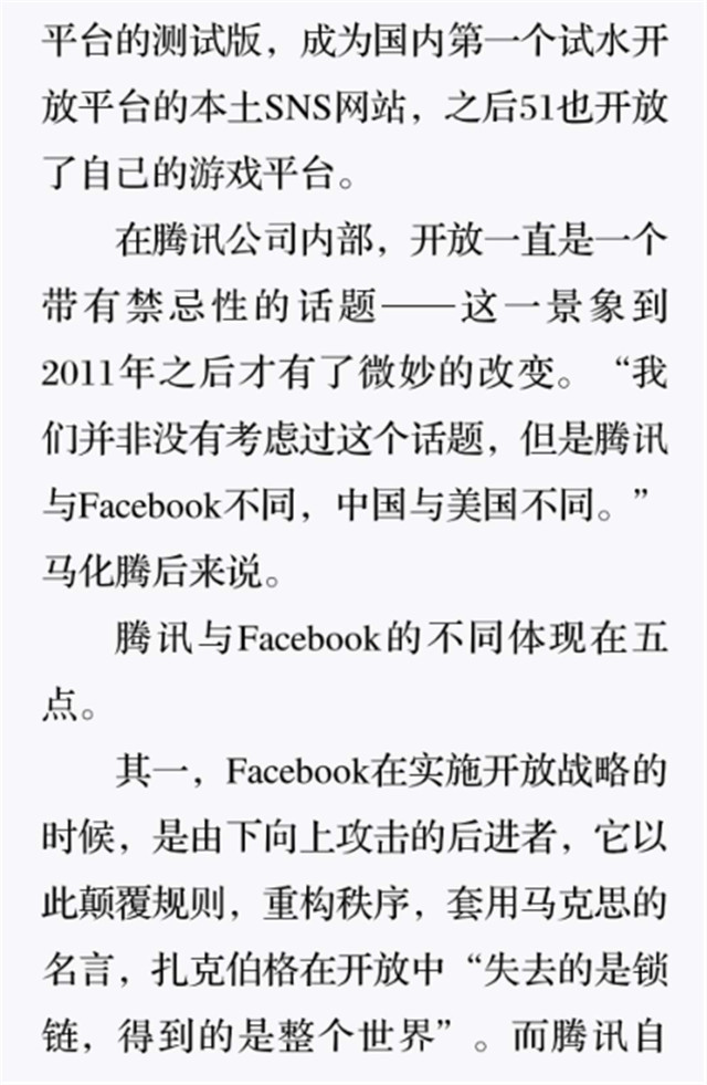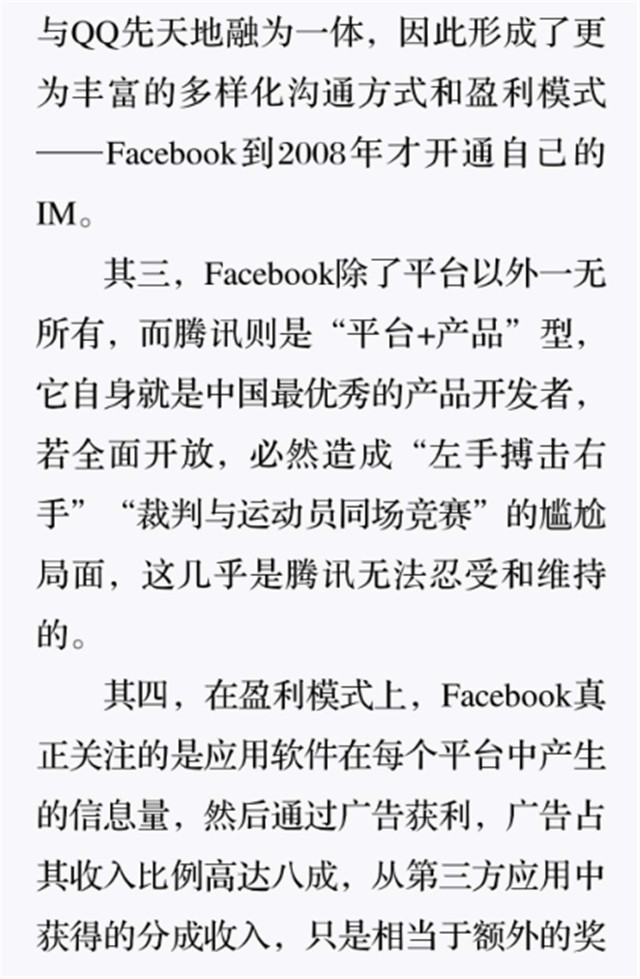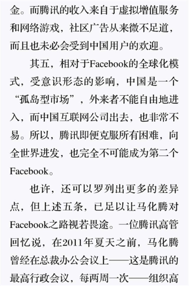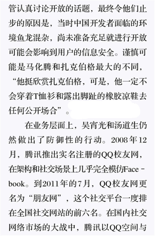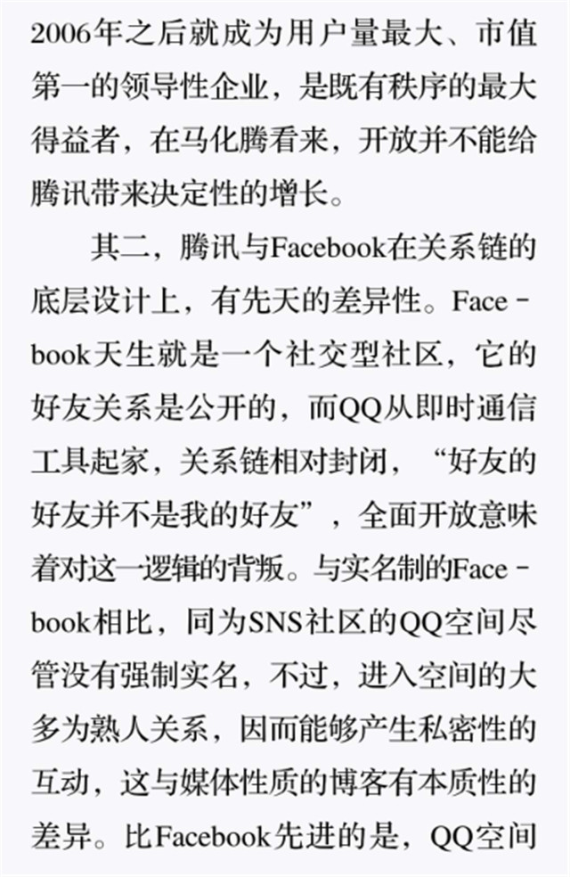 深读之后发明,,,,,,,着实全书真正的焦点在于透过腾讯可以视察到的中国企业逻辑,,,,,,,其中许多基于国情而降生的特殊能力,,,,,,,已往或受诟病或被追捧,,,,,,,而本书作者可以以越发客观的姿态对其举行剖析,,,,,,,这无疑是一种今世创业者和企业家应当学习的姿态和能力。。。。。。。。