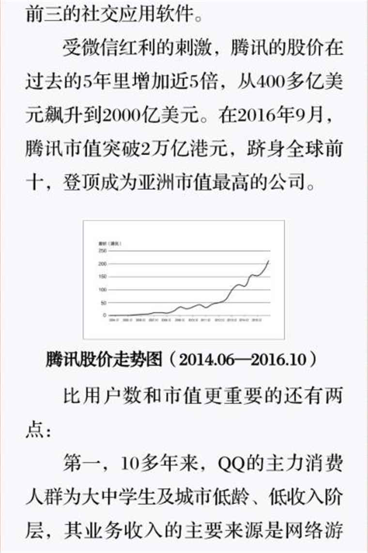 深读之后发明,,,,,,,着实全书真正的焦点在于透过腾讯可以视察到的中国企业逻辑,,,,,,,其中许多基于国情而降生的特殊能力,,,,,,,已往或受诟病或被追捧,,,,,,,而本书作者可以以越发客观的姿态对其举行剖析,,,,,,,这无疑是一种今世创业者和企业家应当学习的姿态和能力。 。。。。。