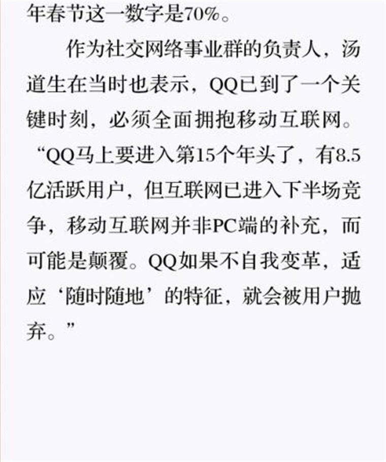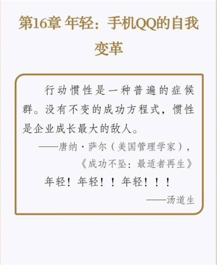 深读之后发明,,,,,着实全书真正的焦点在于透过腾讯可以视察到的中国企业逻辑,,,,,其中许多基于国情而降生的特殊能力,,,,,已往或受诟病或被追捧,,,,,而本书作者可以以越发客观的姿态对其举行剖析,,,,,这无疑是一种今世创业者和企业家应当学习的姿态和能力。。。。。。。。
